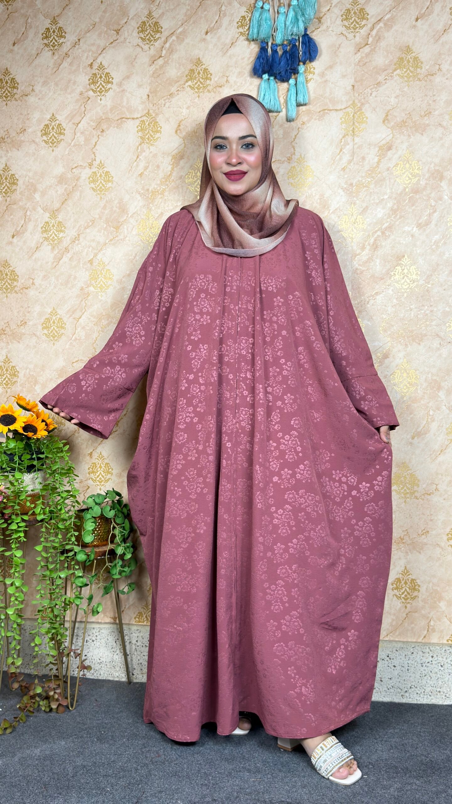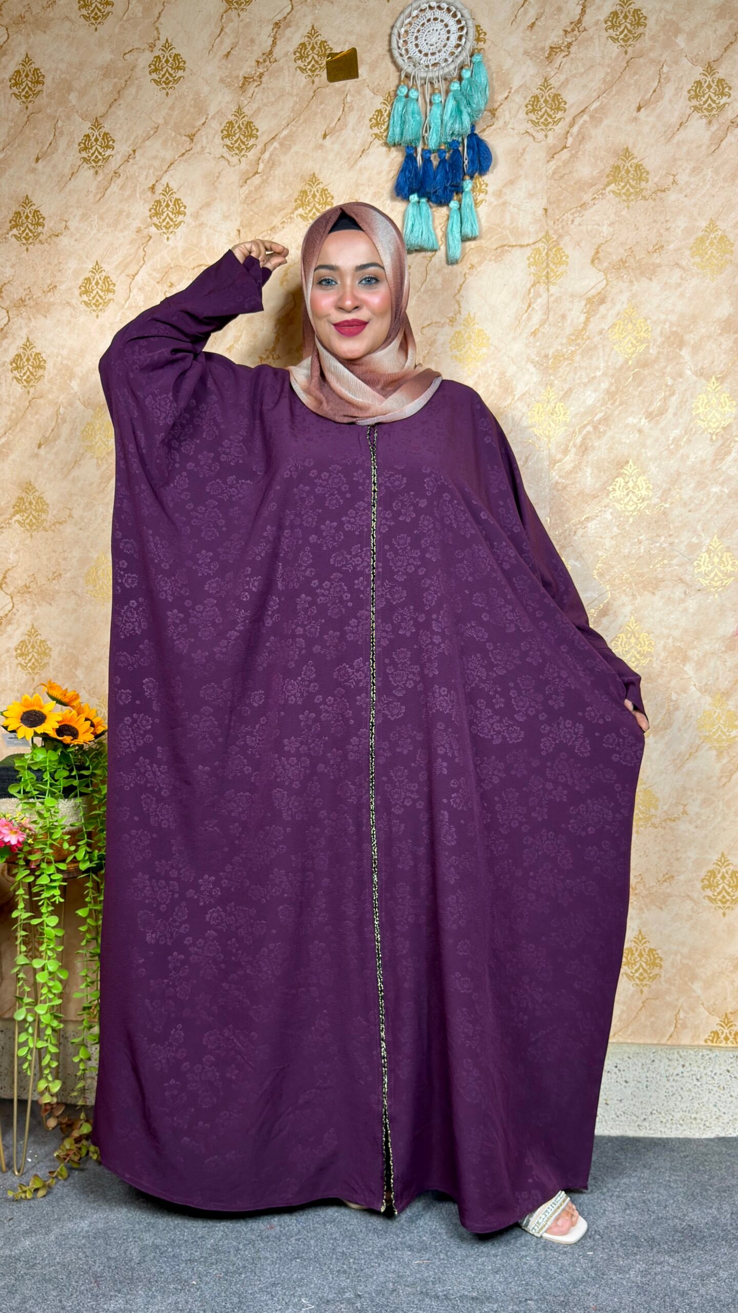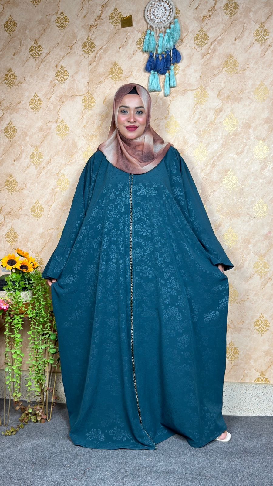 এই এক্সক্লুসিভ আবাইয়া দিয়ে নিজেকে রাজকন্যার মতো সাজাও! দুবাইয়ের জমজম ফ্যাব্রিকে তৈরি, যা আলোতে চিকচিক করে – স্পেশাল অকেশনের জন্য পারফেক্ট। হাতে কুচি সিস্টেম ও ক্রিস্টাল লেসের জাদুয়ি কাজ তোমাকে স্টার বানিয়ে দেবে। নিকুত ফিনিশিংয়ের কারণে ফিটিং একদম পারফেক্ট, আর আরামদায়ক কাপড় সারাদিন কমফোর্ট দেবে।